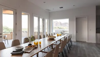 The welcoming Julep By Avantstay Stylish 9 Bedroom Estate W Mid-Century Modern Decor Phoenix villa is located 3.2 km from the Camelback mountain "Piestewa Peak Park" and provides golf for active guests. Located in an entertainment area, the 5-bedroom villa features an outdoor swimming pool as well as views of the pool.